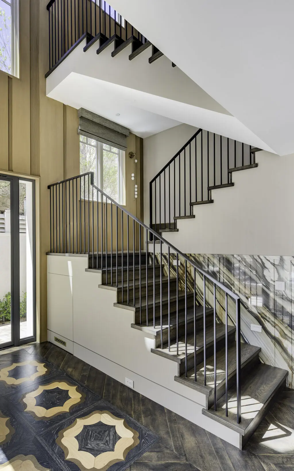 The interior architecture reflects this philosophy, delivering a layout that flows with ease while retaining a strong sense of identity in each room. Living and entertaining spaces are open yet considered, making room for richly layered moments of impact. Every wall was dressed with custom wallpaper or Venetian plaster, setting the scene for a series of rooms that are as tactile as they are visual.