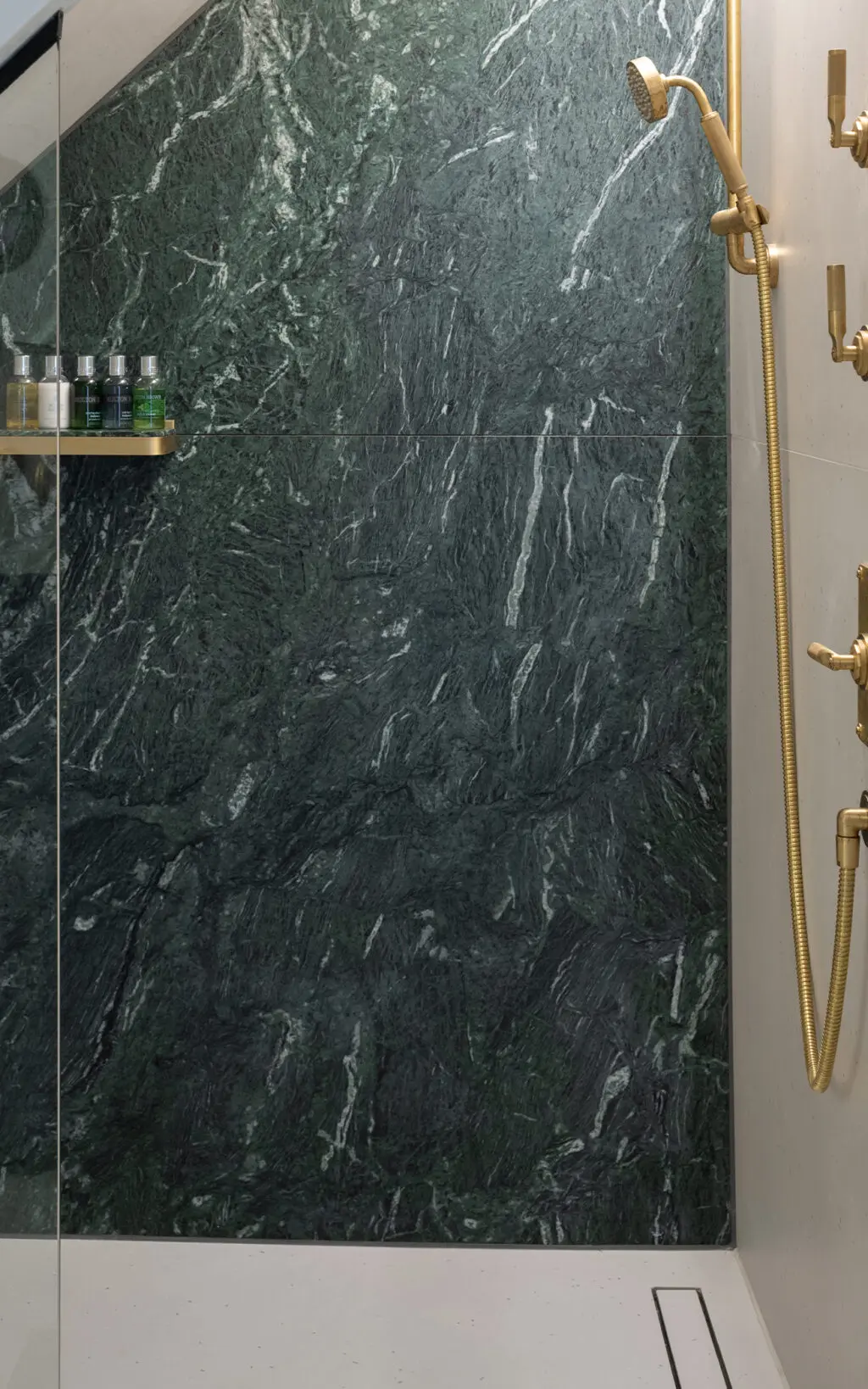 Sjartec were appointed to honour a natural monument by designing bejewelled villa bathrooms with an all-embracing feeling of calm.