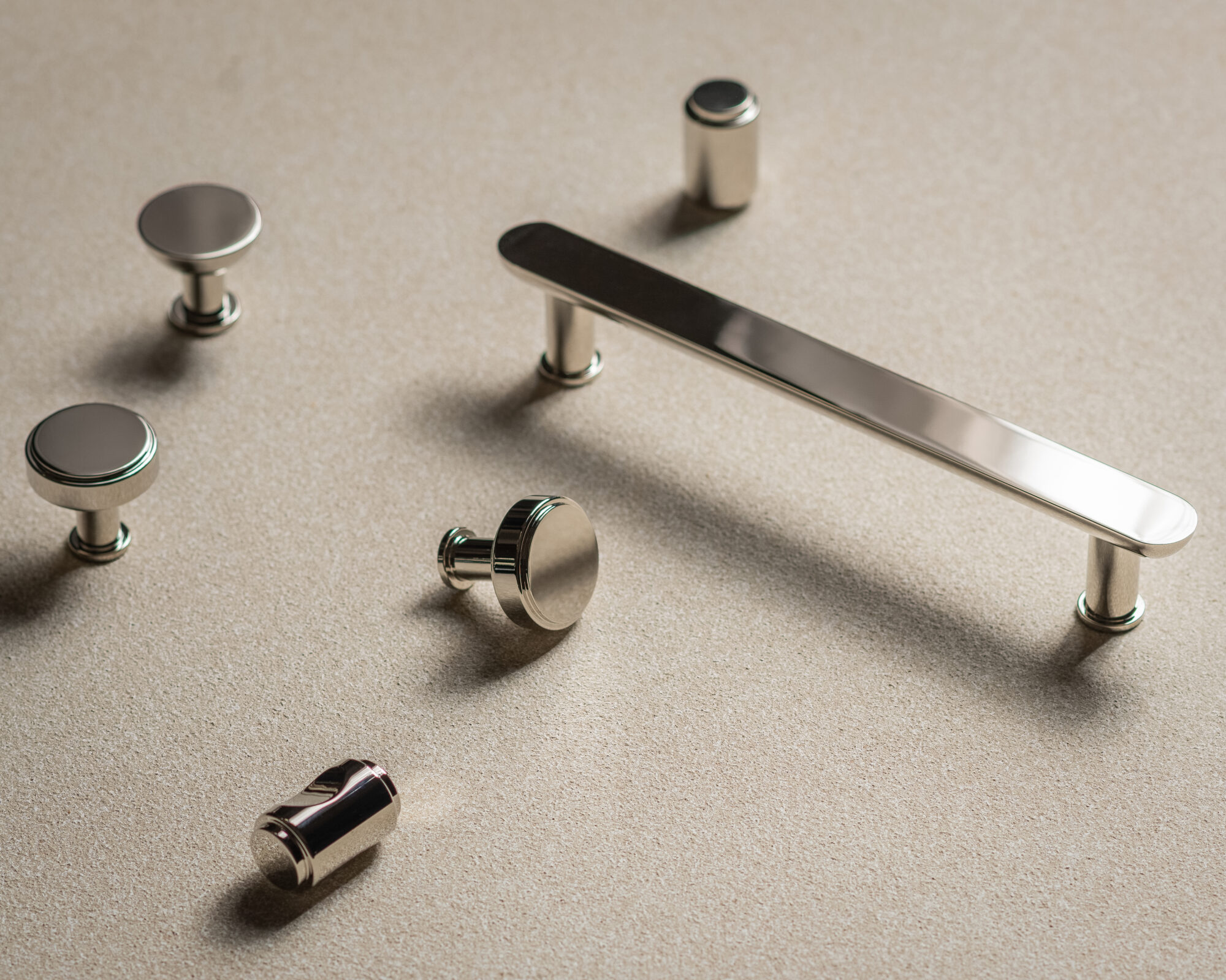 Our new cabinet handles and cupboard knobs are machined from solid brass at our factory in Birmingham, polished by hand and finished by our expert artisans in the same wide range of finishes that we offer on our brassware so that you can always be sure of a perfect match. They are available direct from us in our online shop.