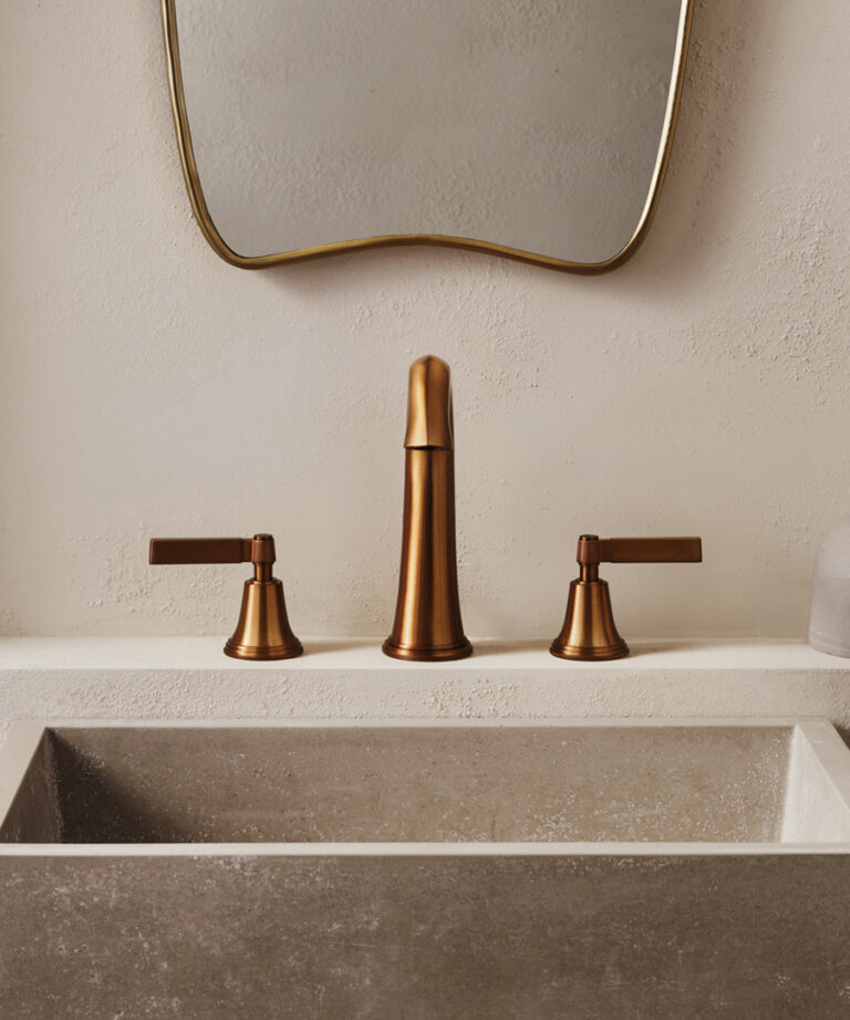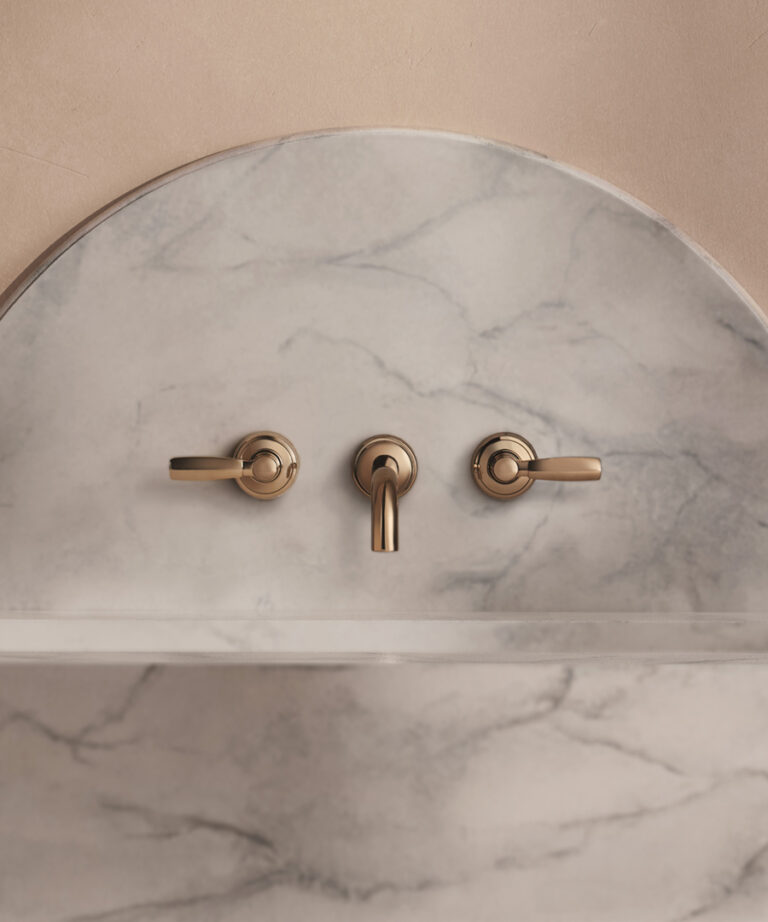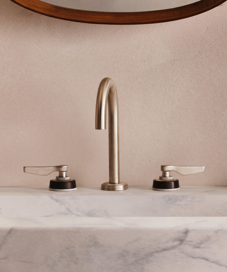 “Together, the stones and sanitary ware created a tactile landscape,” adds Soliman, “where water meets surface in a gentle choreography of light and texture. The pairing of Samuel Heath’s heritage design with the organic imperfection of stone felt profoundly luxurious – not in a shouty, high-gloss way, but in the quiet confidence of enduring quality.”